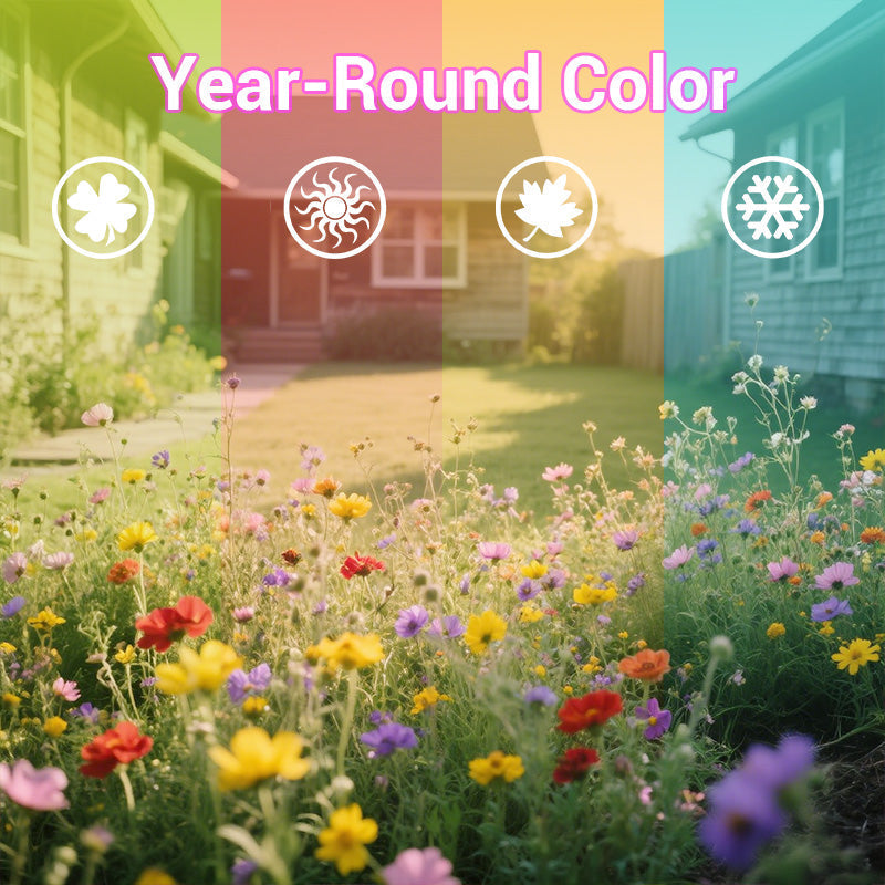 Trockenheits- und kältebeständig: Enthält eine Mischung aus trockenheitstoleranten und frostbeständigen Sorten, ideal für wechselnde Klimazonen. Ob trockener Sommer oder kühler Herbst, die Blumen wachsen und blühen weiter.