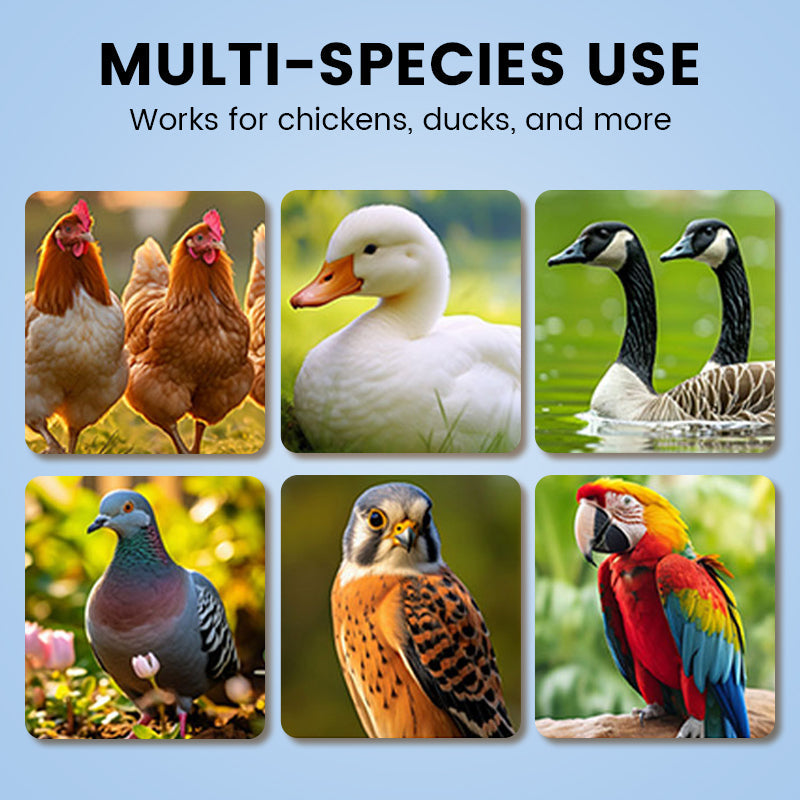 BREITE ARTENVERTRÄGLICHKEIT : Formuliert, um die Ernährungs- und Verdauungsbedürfnisse verschiedener Geflügelarten zu unterstützen, darunter Hühner, Enten, Tauben, Papageien, Gänse und andere Vögel.