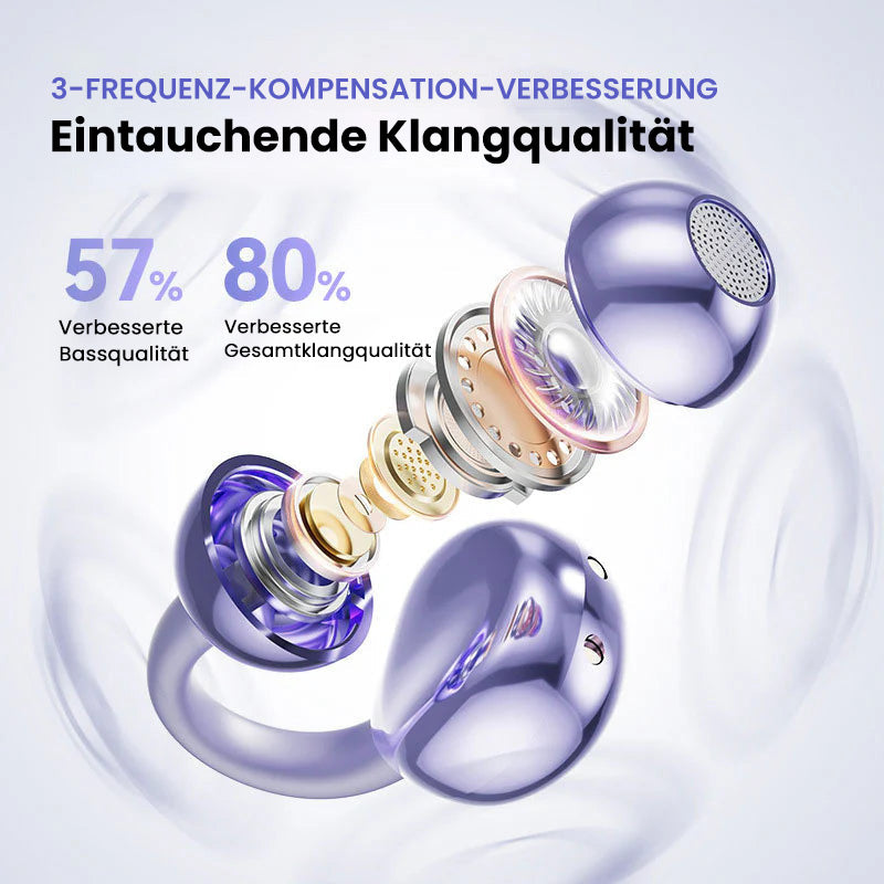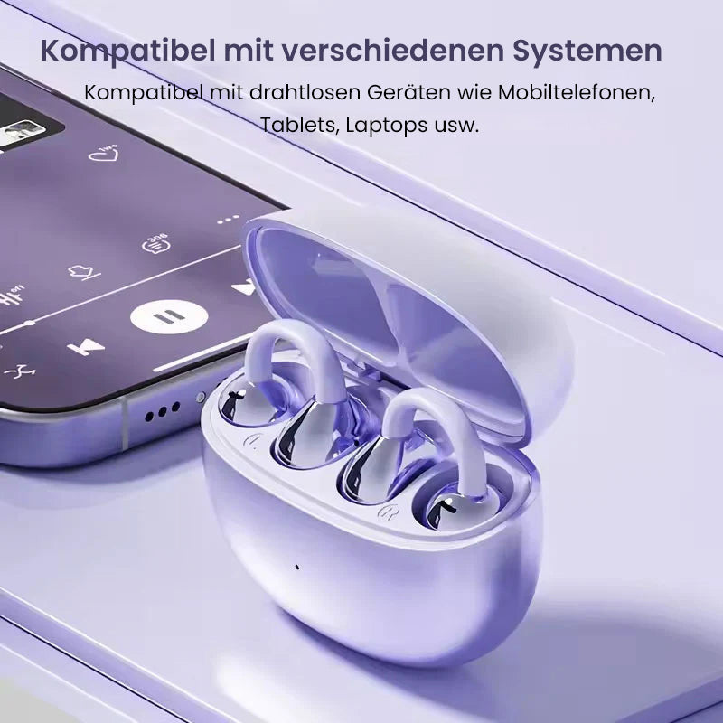 Erleben Sie die perfekte Kombination aus Stil, Komfort und hervorragender Klangqualität mit unseren Bluetooth-Ohrhörern mit Ohrclip. Dank modernster Bluetooth 5.4-Technologie, Hi-Fi-Sound und einem federleichten Design genießen Sie ein müheloses und intensives Hörerlebnis.
